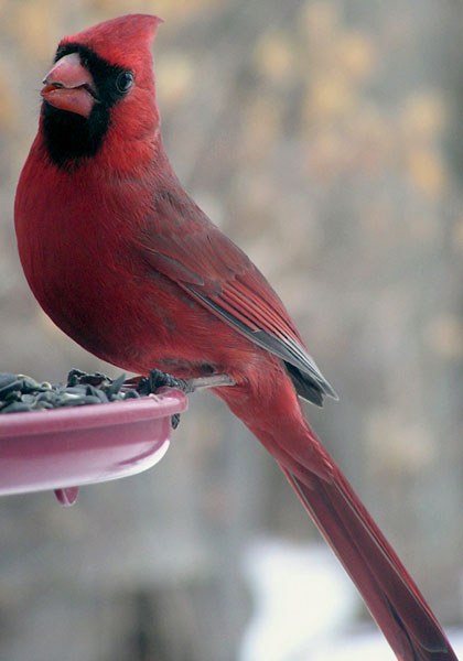 People are somewhat like that too. At church dinners, if there is serve-yourself table of food, some Chickadees fill their plates and take off for a chair and table at which to eat it. Some Finches, on the other hand, hang around the serving table continually eating until it’s time to go home.